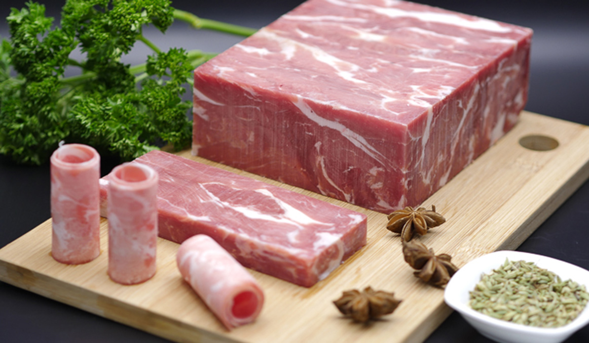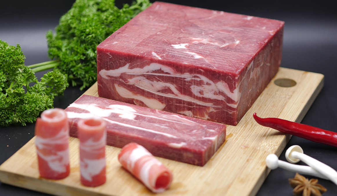 肉質(zhì)鮮美,口味醇香,切片后肥瘦相間,適合涮食。