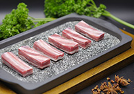 脊椎骨(7-11肋)兩側(cè)部位肉,部位肉酮體占3.6%,表面去風(fēng)干肉、淤血肉及軟硬骨,保留自然脂肪,肉質(zhì)紅白相間,呈大理石花斑紋狀,肉質(zhì)細(xì)嫩,脂肪含量較高,香甜多汁,不干澀。