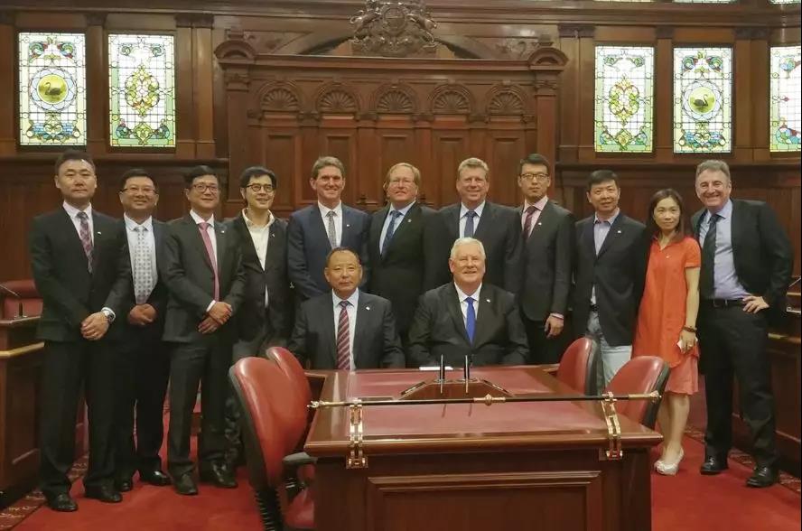 2015年11月2日,陳希濱董事長在西澳議會(huì)立法委員會(huì)主席巴里·豪斯、西澳立法委員會(huì)上議會(huì)議員馬克·劉易斯、西澳州政府農(nóng)業(yè)食品部經(jīng)理特里的陪同下,參觀了西澳國會(huì)大廈和上下議院,并在議會(huì)大廈共進(jìn)午餐。
