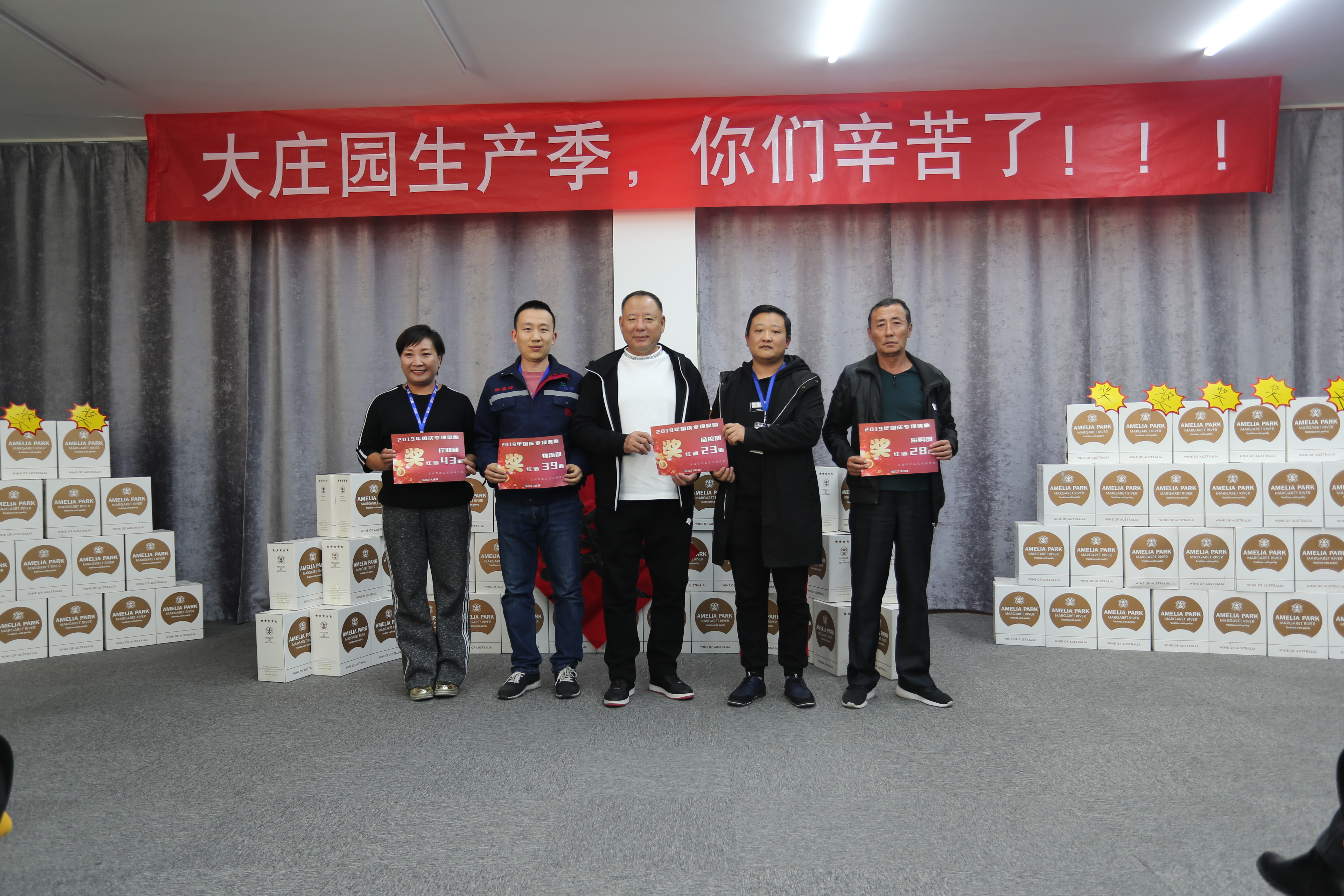 在全場如雷的掌聲中,大莊園集團(tuán)董事長陳希濱先生向連續(xù)十五天達(dá)成7000+的“主力軍”:生產(chǎn)部、采購部、品控部和設(shè)備部頒發(fā)了總額為10萬元的獎金,向全體節(jié)日期間堅(jiān)持奮戰(zhàn)在工作崗位的員工頒發(fā)了“專項(xiàng)獎勵”——每人兩瓶價值不菲的澳洲紅酒。